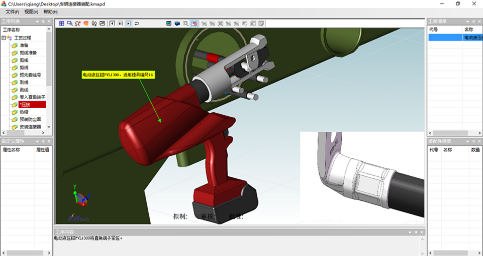 通过三维可视化工艺设计提升装配工艺设计的效率和质量,降低对工艺人员的要求,为年轻的工艺人员提供基础设计平台,从而克服传统的装配工艺设计中主要依赖于人的装配经验和知识,以及设计难度大、设计效率低、优化程度低等问题。