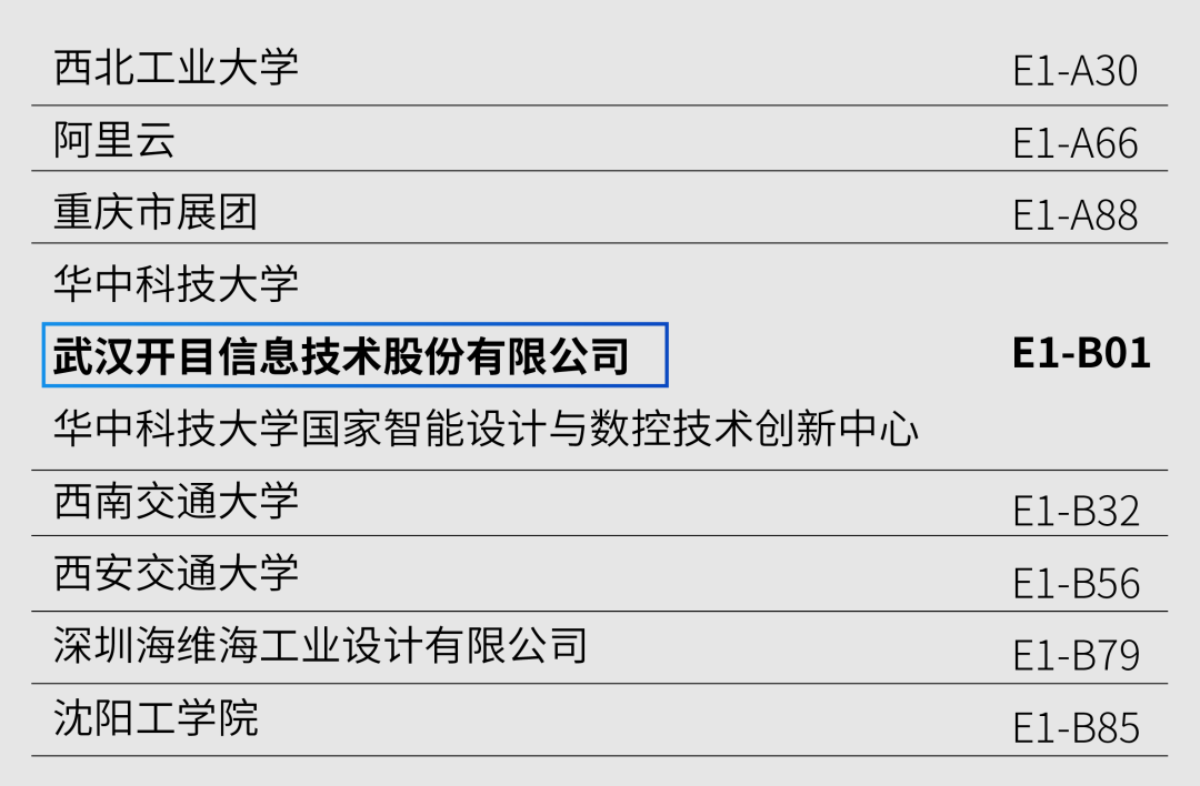 开目软件展位:E1-B01