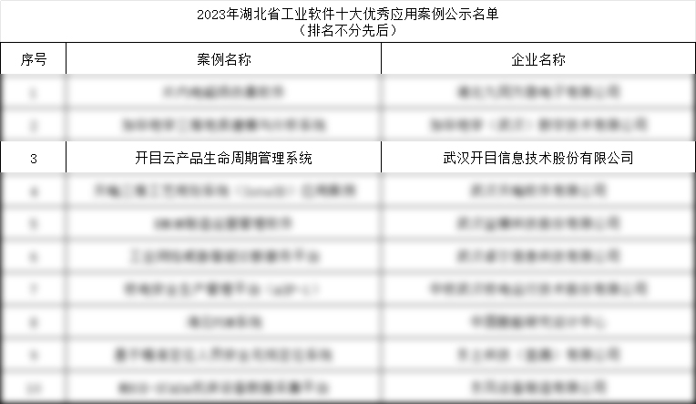 近日,根据《省经信厅办公室关于征集2023年湖北省工业软件十大优秀应用案例的通知》要求,经专家评审,省经信厅公示了“2023年湖北省工业软件十大优秀应用案例”,开目软件自主研发的“开目云产品生命周期管理系统KMPLM CLOUD”凭借技术和产品的领先性与创新性,成功入选该榜单。