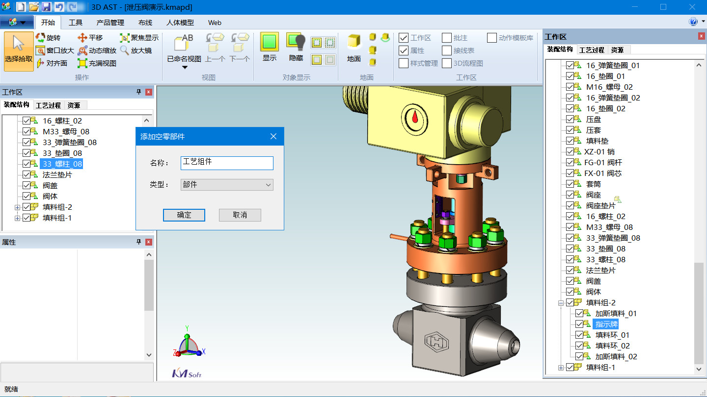 三维装配工艺设计与系统可根据产品结构的层次关系,通过人机交互的方式,在装配步骤规划前进行装配结构调整以满足产品装配工艺性要求,包括添加工艺合件等,可根据装配特点定义的装配结构树,以装配关联矩阵的形式进行存储,实现结构化工艺管理,操作直观、便捷。