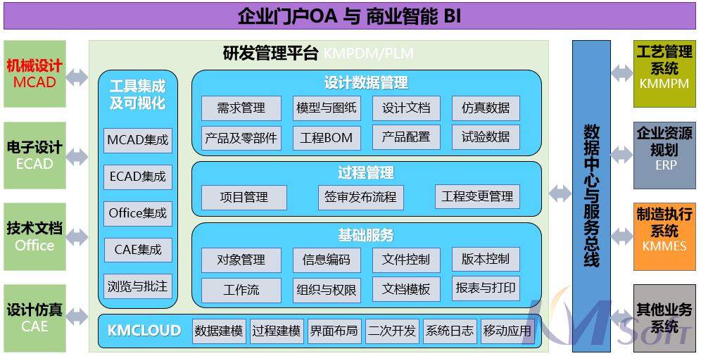 作为制造信息化解决方案的核心管理平台,KMPLM CLOUD 3.0可作为企业研发、工艺、服务、制造管理系统的公共基础,满足系统所需的各项平台功能。KMPLM CLOUD 3.0拥有跨平台的OLTP+OLAP内存数据中间件组件,能实现不同数据库的共享访问与内存数据事务处理和联机分析;提供便捷齐全的在线或离线二次开发能力,快速实现产品的功能扩展与外部集成(物联网、本地应用等);支持多种终端在线的三维模型互动操作,实现线上三维产品的BOM结构智能化辅助编辑。