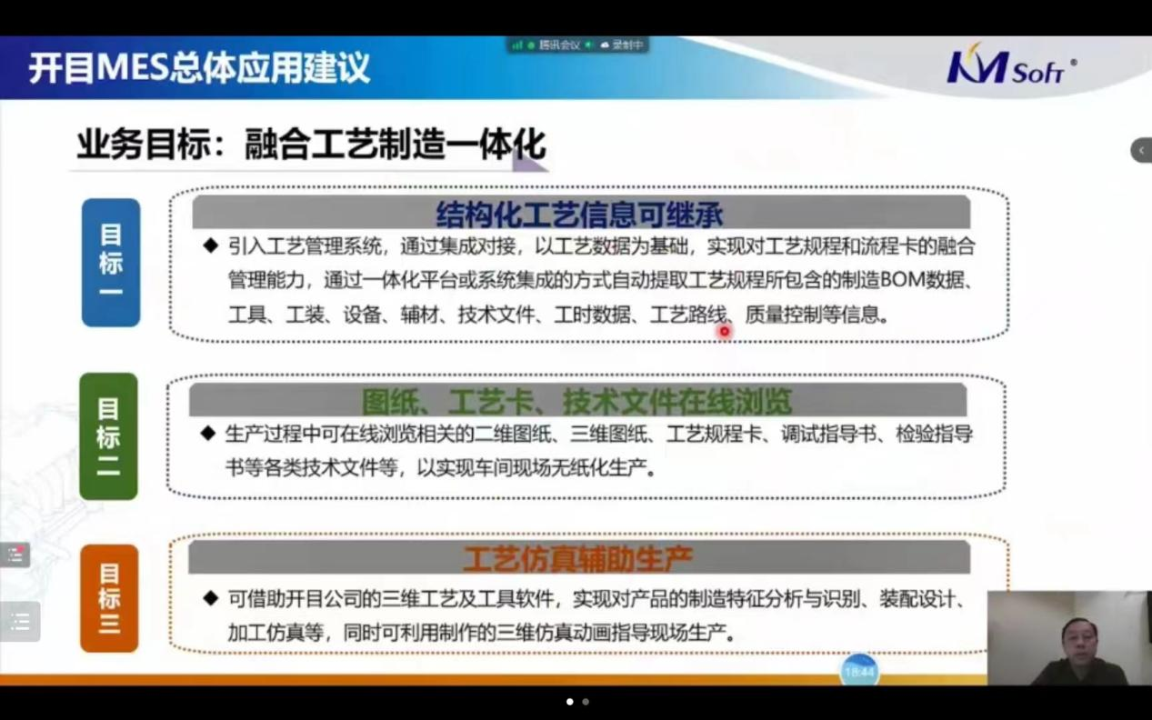 随后,开目软件MES事业部总经理杨亚菲围绕《高端制造业的数字化工艺制造端到端应用实践》主题,也为参会企业详细介绍了开目工艺与制造一体化解决方案的主要特点和应用实践,与来宾探讨离散型制造企业如何打造智能车间,有效融合工艺制造,实现精益生产。