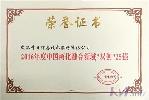 荣获2016年度中国两化融合领域“双创”奖,为“大众创业,万众创新”而服务