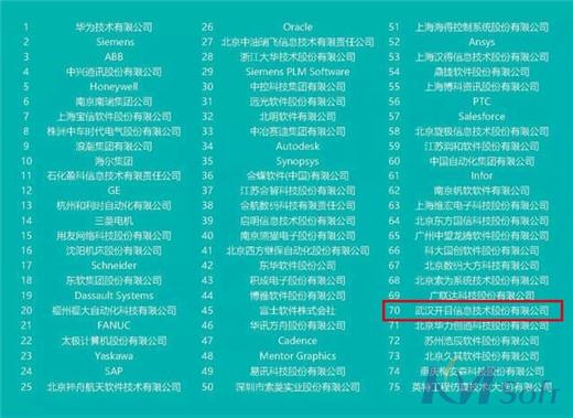 10月27日,中国软件产业发展联盟发布了“2017年中国工业软件企业排行榜”,开目公司荣登百强榜第70名,排名较上一年上升了6位。赛迪顾问股份有限公司以专业的行业榜单和市场研究咨询服务见长,被业内誉为“中国信息产业风向标,排行榜的权威性高,极具可参考价值。开目公司成功登榜,很大程度上代表了行业对于开目公司市场地位及贡献的认可。