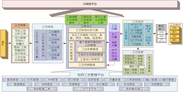 开目MPM系统实现对企业工艺部门从三维设计模型引入到三维工艺信息发布的完整业务活动提供多角度、多层次的支持。主要业务流程包括工艺审查、工艺规划、工序设计、工艺仿真、工艺发布、工艺变更、工艺执行以及构建企业协同工艺管理平台等环节。