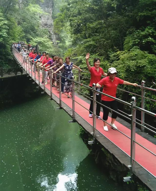 相携走过高耸的晃晃桥,红色的KMers有木有最亮眼