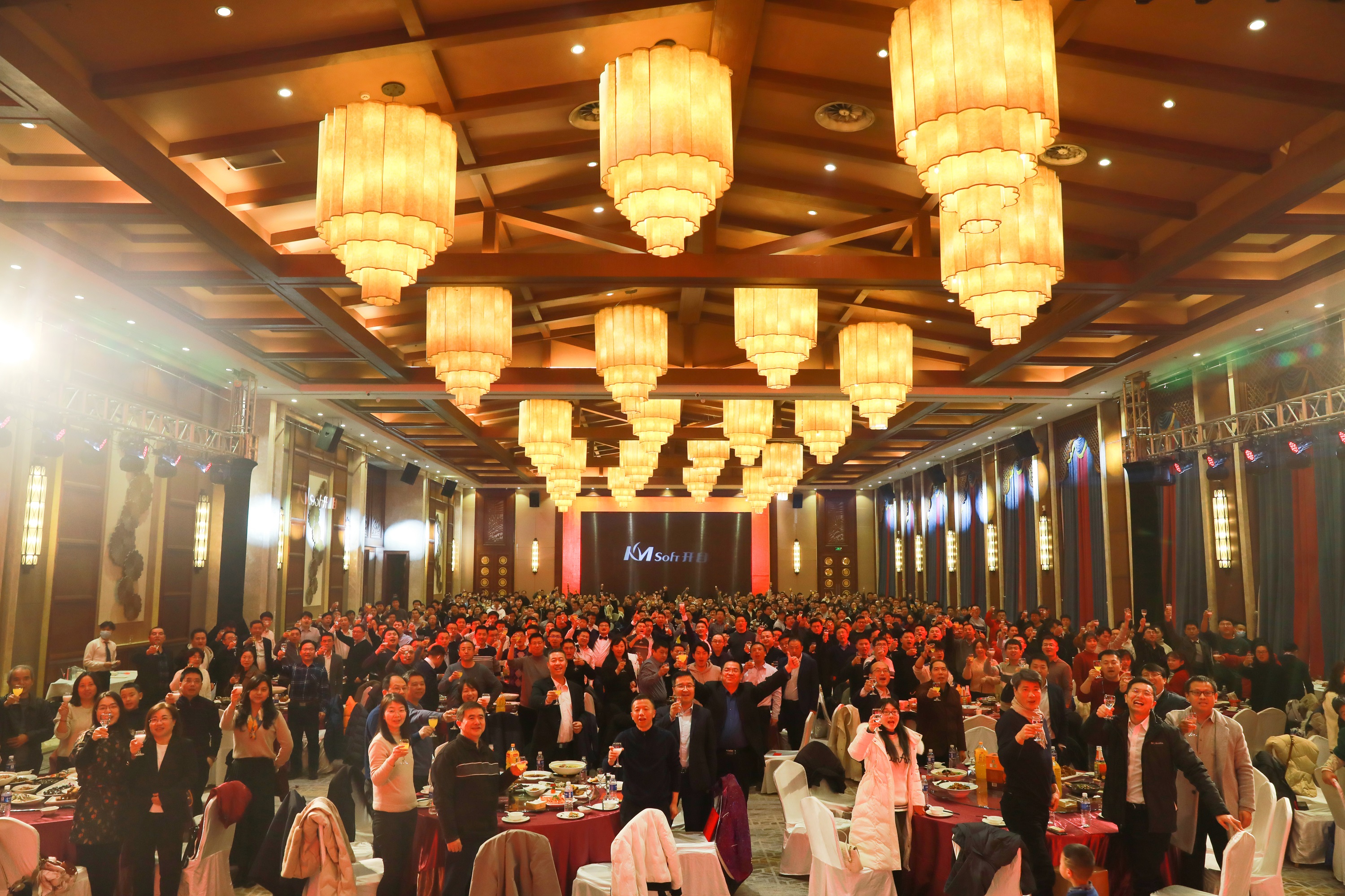 2月4日,立春节气,终而有始,万象更新。时隔四年,开目软件新春年会暨团年晚宴再次隆重举行,本次年会以“同心创变 乘势而为”为主题,公司创始人、首席科学家陈卓宁教授,董事长陈万领博士,总经理宁静波先生,各投资合作伙伴代表,开目老同事,员工及家属,近500人欢聚一堂,共飨盛宴。