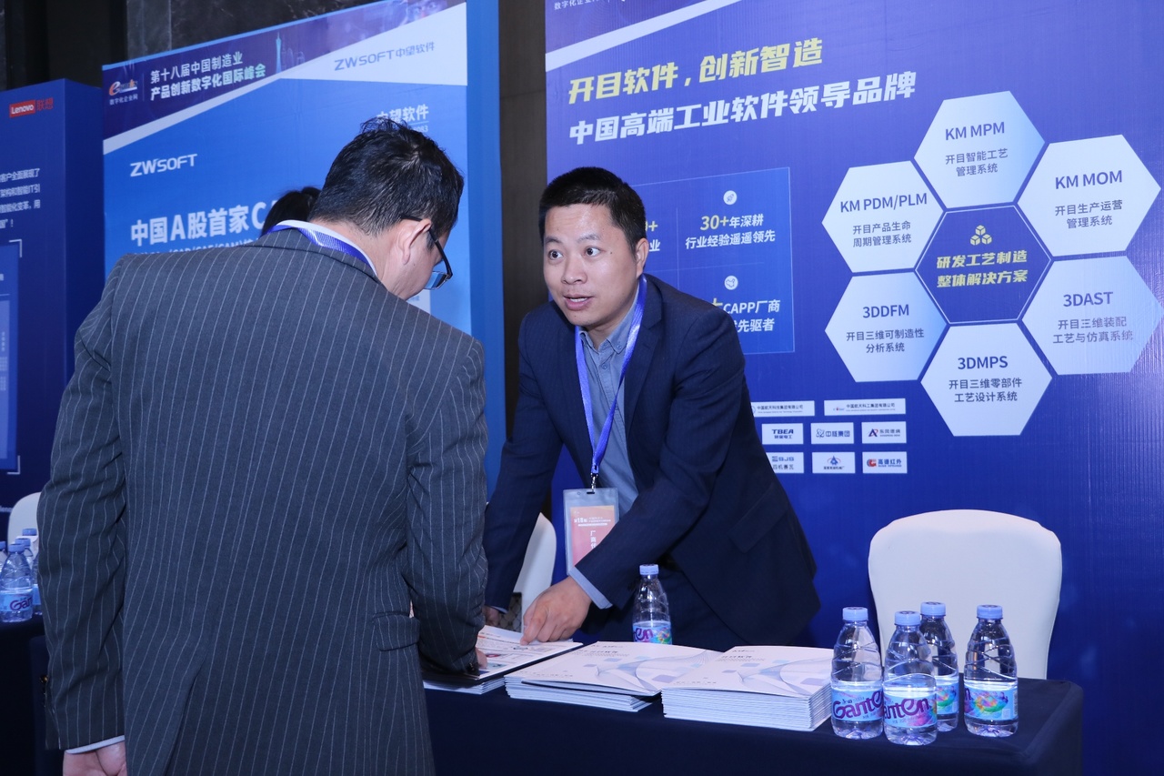 在会场外的产品展示区,开目软件展示了自主研发的PLM、MPM、MES等一系列覆盖设计、工艺、制造环节的一体化智能制造解决方案,以及以3DAST、3DMPS、3DDFM为代表的国内领先的创新智能工艺工具产品,得到了众多与会嘉宾的强烈兴趣和关注,纷纷表达后续进一步交流的强烈意愿。