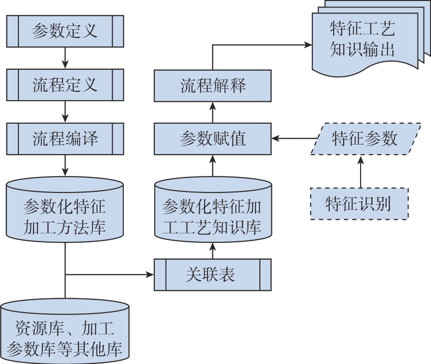 构建一个参数化工艺设计平台来使用工艺知识库中的加工方法推理逻辑流程,通过采用参数过程图技术实现特征工艺知识的表达、定义、解释和输出。定义参数过程图是工艺知识表达和应用的核心模块,其核心功能主要包括参数定义、流程定义、流程解释等功能,如图6 所示。
