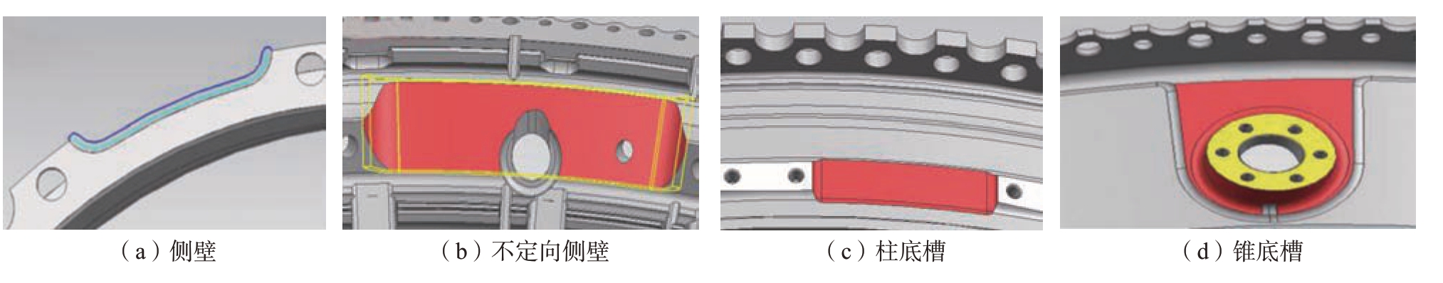 机匣零件特征主要分为回转面系、锥底槽、侧壁、孔系、平面、环槽等类型特征,按照加工方法进行定义,如图2 所示。