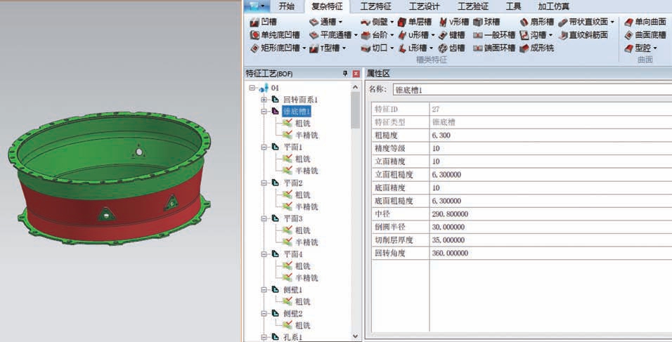 (1)通过三维工艺设计软件对机匣三维模型进行特征识别,提取机匣模型几何信息以及非几何信息并形成加工特征集(图11)。