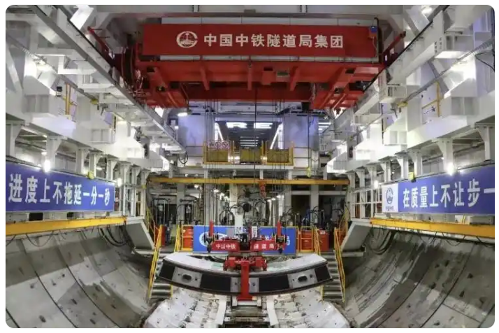 甬舟铁路金塘海底隧道,“定海号”“甬舟号”盾构机相向“穿海”。管片智能运输系统如“地下物流网”,将14吨重的管片精准送达拼装位,效率提升40%。