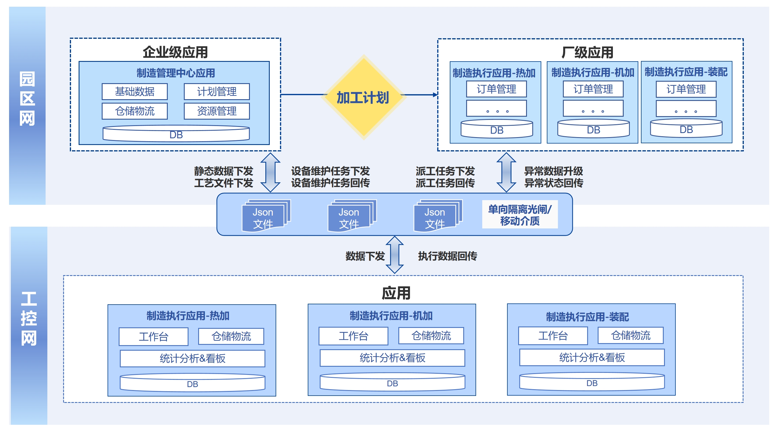 高端制造企业生产车间数据安全至关重要。当前,企业多通过物理方式将内部网络与工控网络的数据进行隔离,因此订单数据、工艺路线、产品BOM、生产数据、外协进度、设备生产线互联等数据需要经过复杂的流程进行中转,数据流转效率极低且容易丢失。