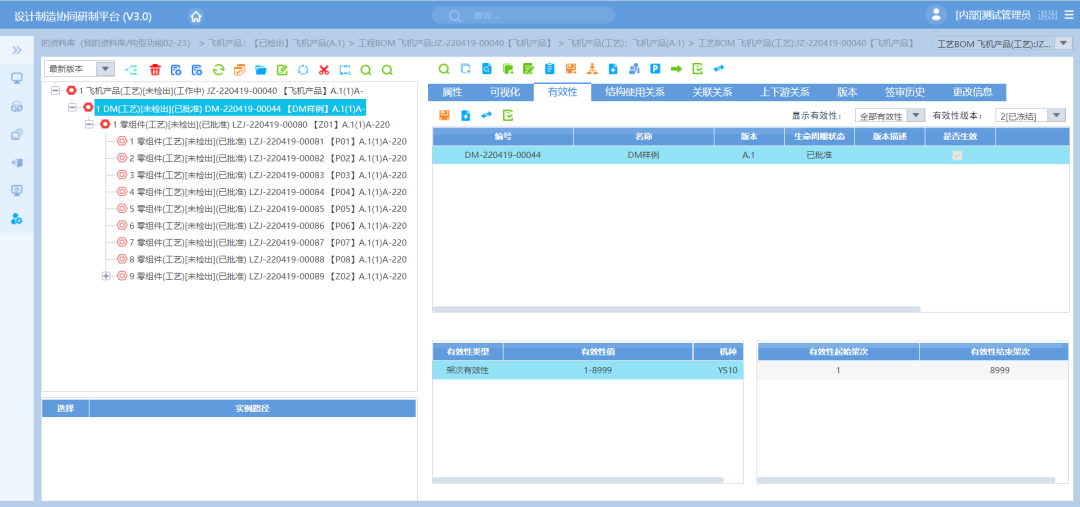 例如,在航空航天领域,中航某集团公司借助KMPLM CLOUD产品,构建了从设计数据接收到工艺设计与管理、车间制造、维护服务的全生命周期管理平台,建立了基于可扩展的XBOM机制为基础、上下游可追溯的EBOM/PBOM/MBOM/OBOM/BBOM/SBOM构型与技术状态管控能力;统一了各种型号的工艺数据技术状态管控模式,实现单一数据源;建立了工艺知识库,实现基于知识的结构化工艺设计;建立了统一的项目管理、任务管理和流程管理模型,实现完整的工作闭环和业绩考核;建立了基于微服务、可扩展、可延伸到外部供应商应用的开放式系统架构,最终实现了国产化、智能化、三维化、结构化的工艺替代。未来,中航某集团公司还将继续以KMPLM CLOUD产品为基础,进一步完善贯穿飞机从设计到退役的全生命周期技术状态管控体系。