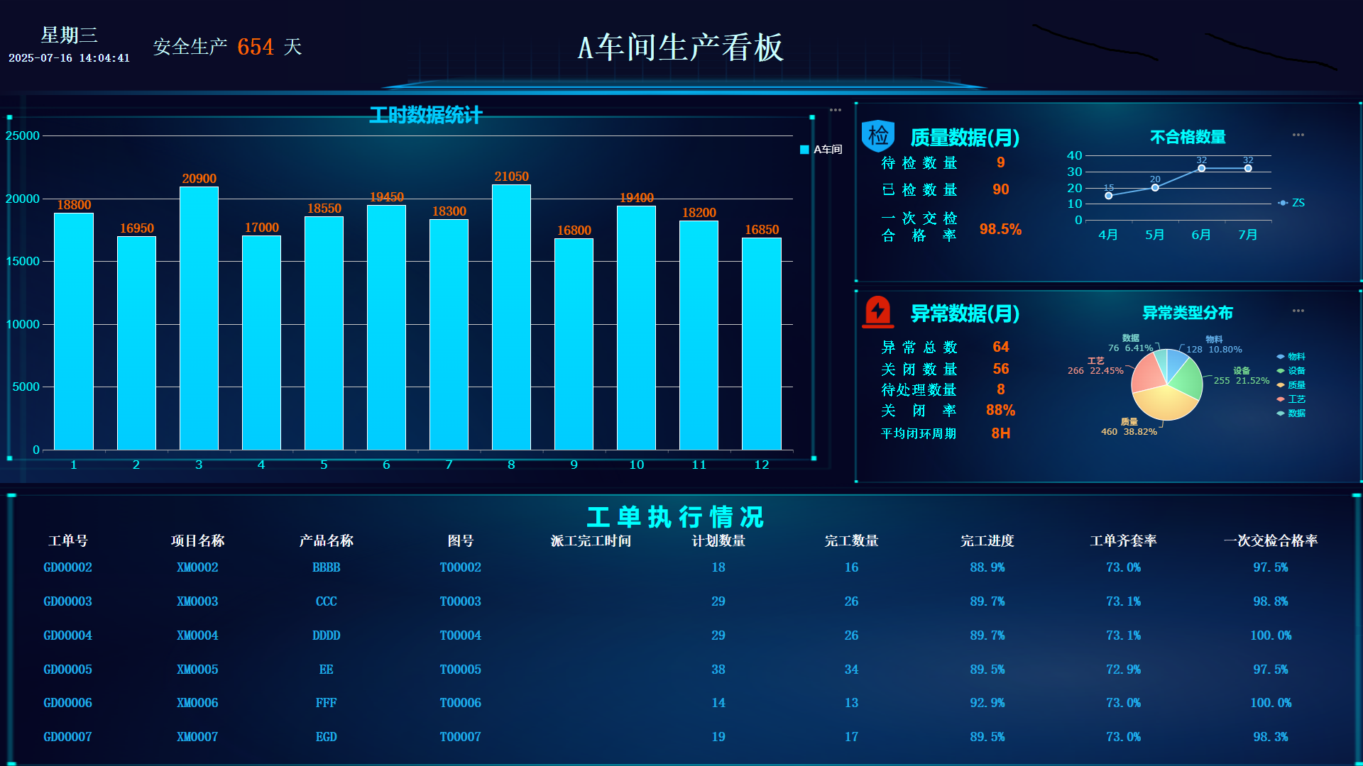 成本核算方面:工时自动统计,成本核算更准确,偏差率显著降低;异常管理??榭焖傧煊ι璞腹收?、缺料等问题,异常关闭率高达88%,有效减少损失。