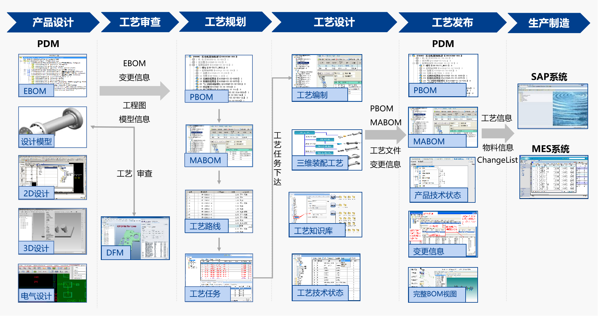 目前,该研究所通过某国外PLM系统基本实现了工艺数据的集中管理,解决了企业工艺设计过程中标准化、规范化问题。但是,工艺设计相关的工艺性分析、工艺内容、工艺规划还是主要靠个人经验形成,系统没有对工艺专业能力的提升起到作用,另外缺乏对三维CAD模型的有效利用与支持,导致了生产现场的工程变更频繁、工作量大、生产周期长、生产成本高。同时“文件”模式的工艺设计管理方式,也无法满足企业智能制造对产品工艺数据“结构化”要求,进而也影响企业精细化、多系统、多专业协同化管理需求。